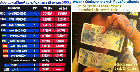 เงิน ฮ่องกงใช้เงินสกุล ดอลล่าร์ฮ่องกง (Hong Kong Dollar or HKD) อัตราแลกเปลี่ยน ณ วันที่เราเดินทางคือ 4.14 บาท ต่อ 1 ดอลล่าร์ฮ่องกง